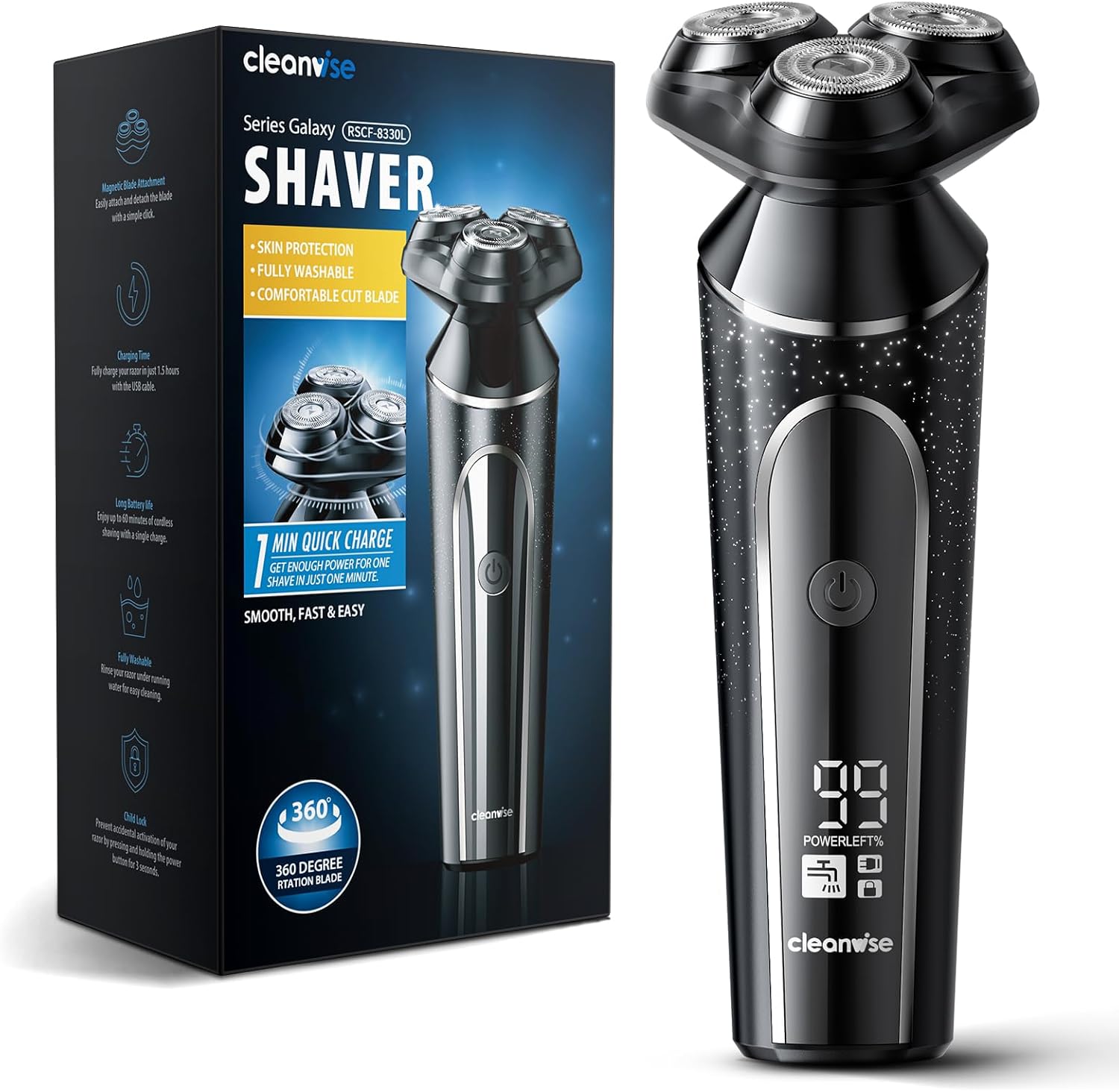 10 reviews for Electric Razor for Men,Wet & Dry Cordless Rotary Shavers with LCD Display,90Mins Shaving Time,IPX7 Waterproof,Pop-up Beard Trimmer,Magnetic Shaving Head